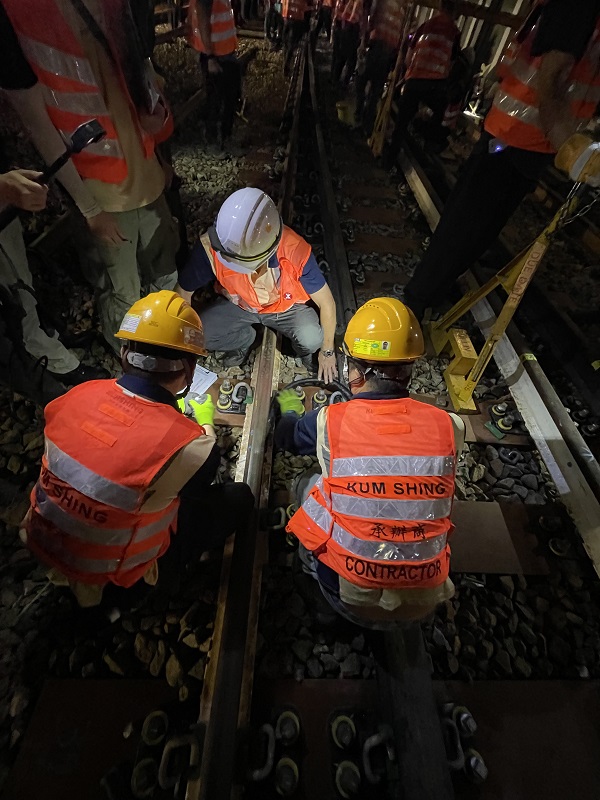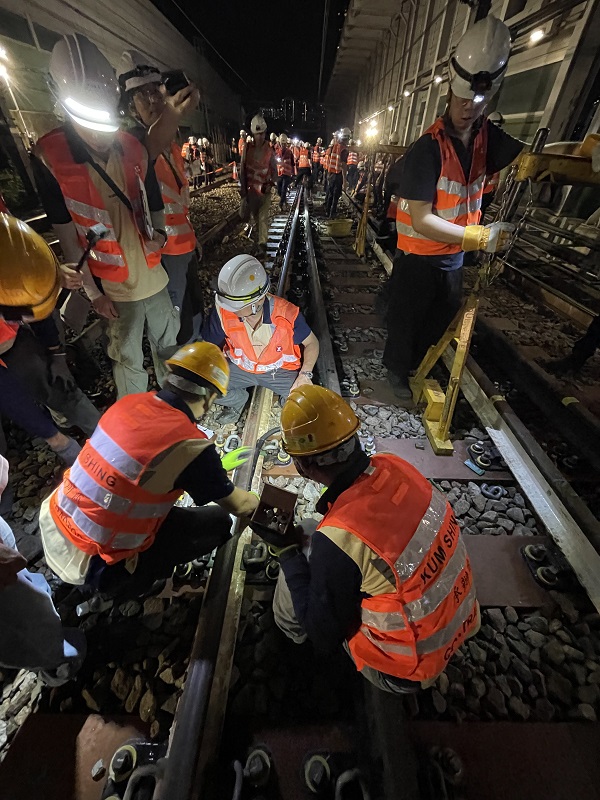 于刚过去的周六深夜,金城机电工程团队出动,为港铁东涌綫延綫路轨改道工程中的首个道岔安装进行路轨接续电线。 感谢港铁安排和乘客配合,相关工程顺利完成!