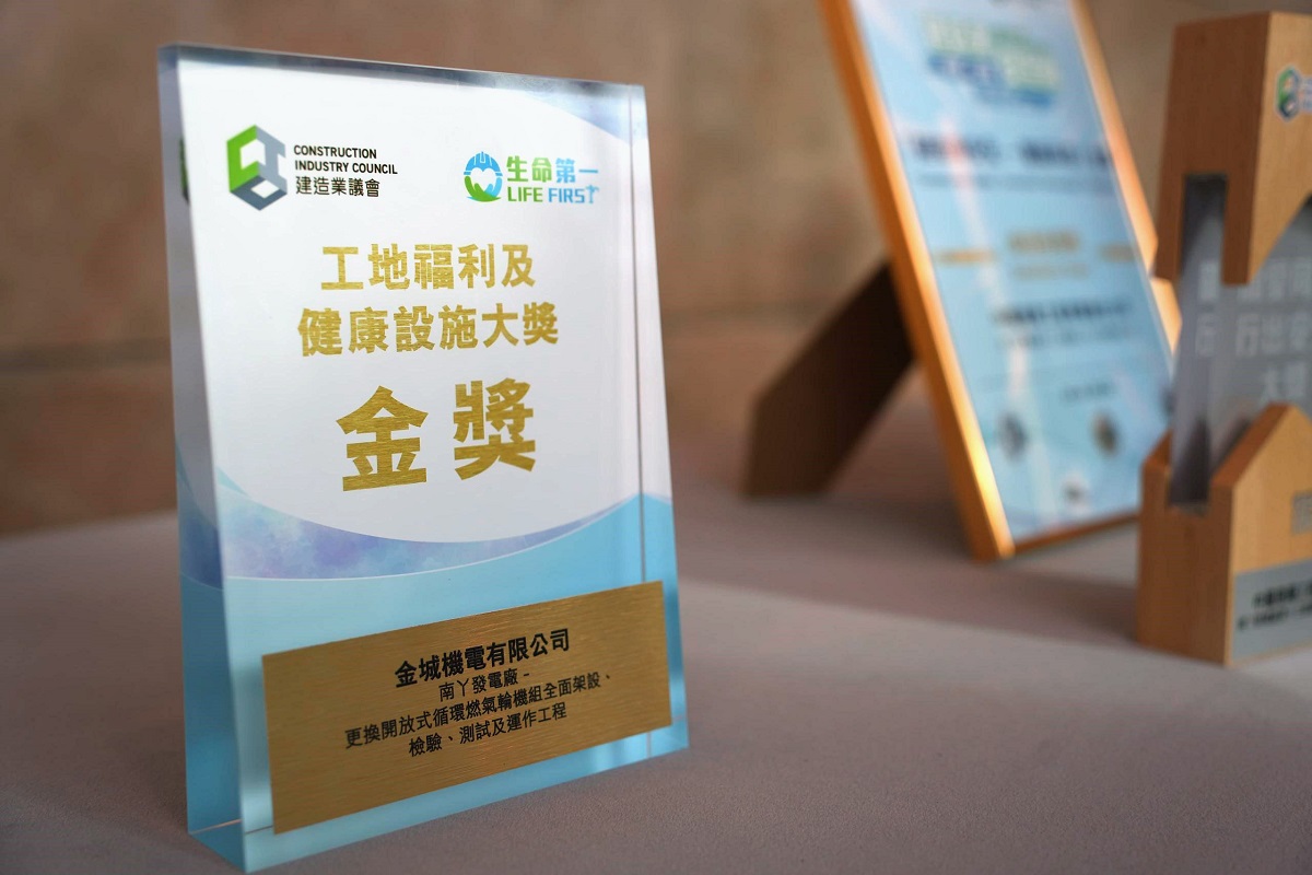 发展局和建造业议会合办的「建造业安全周2025」于本周举行,金城在港灯南丫发电厂的「更换开放式循环燃气轮机组全面架设、检验、测试及运作工程」,凭着出色的健康安全管理表现,荣获「工地福利及健康设施」金奖。