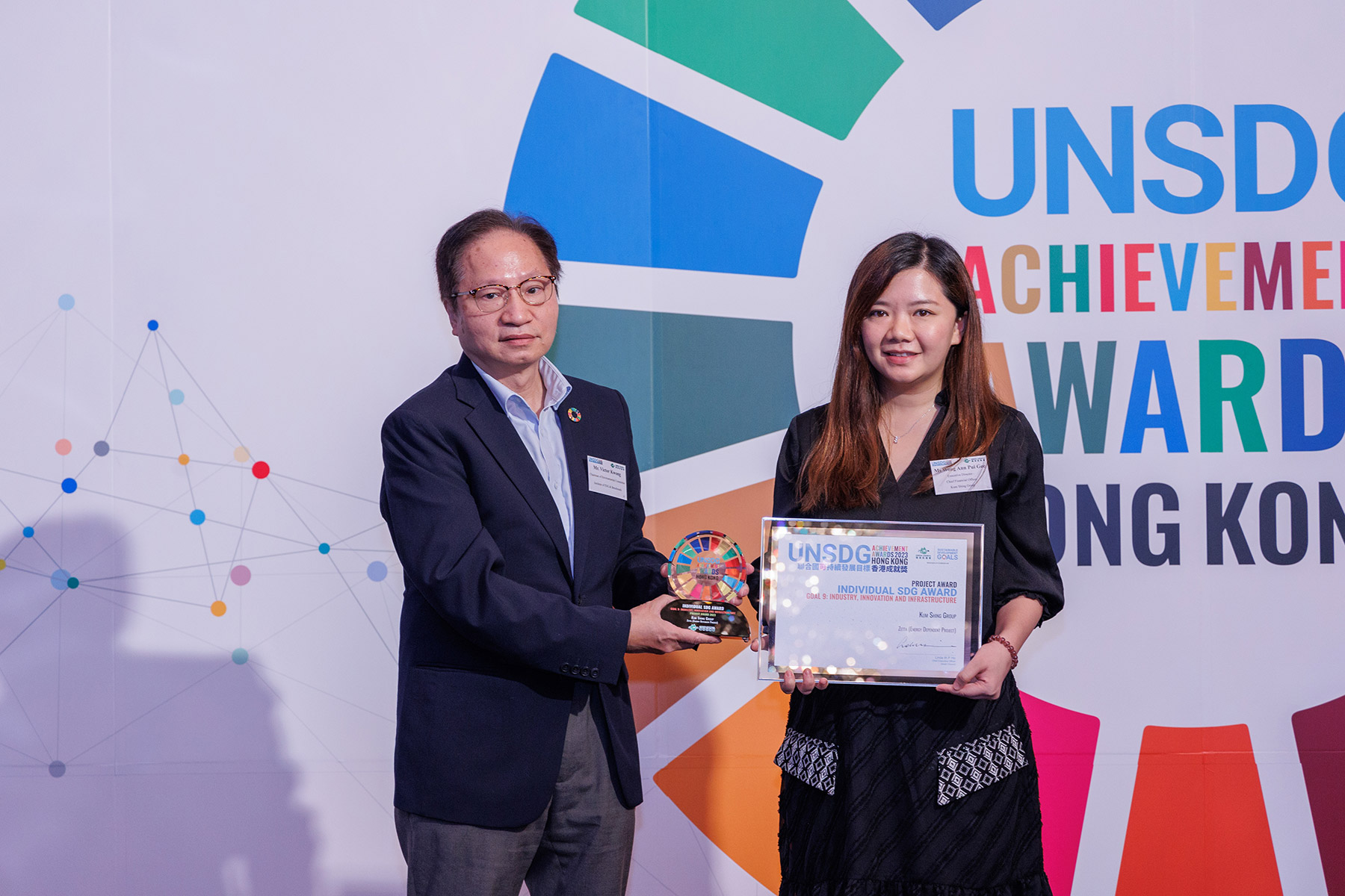 金城致力透過在能源基建方面,為香港建設可持續發展的優質城市。新能源業務「金城快充ZETTA」很榮幸在聯合國可持續發展目標香港成就獎中榮獲兩項傑出獎項—最具影響力項目大獎,和可持續發展目標獎-目標9:工業、創新和基礎設施。兩個獎項肯定了集團和「金城快充ZETTA」電動車充電項目對香港運輸界所產生的影響力,通過引進直流群充技術,建立完善的充電網絡。
